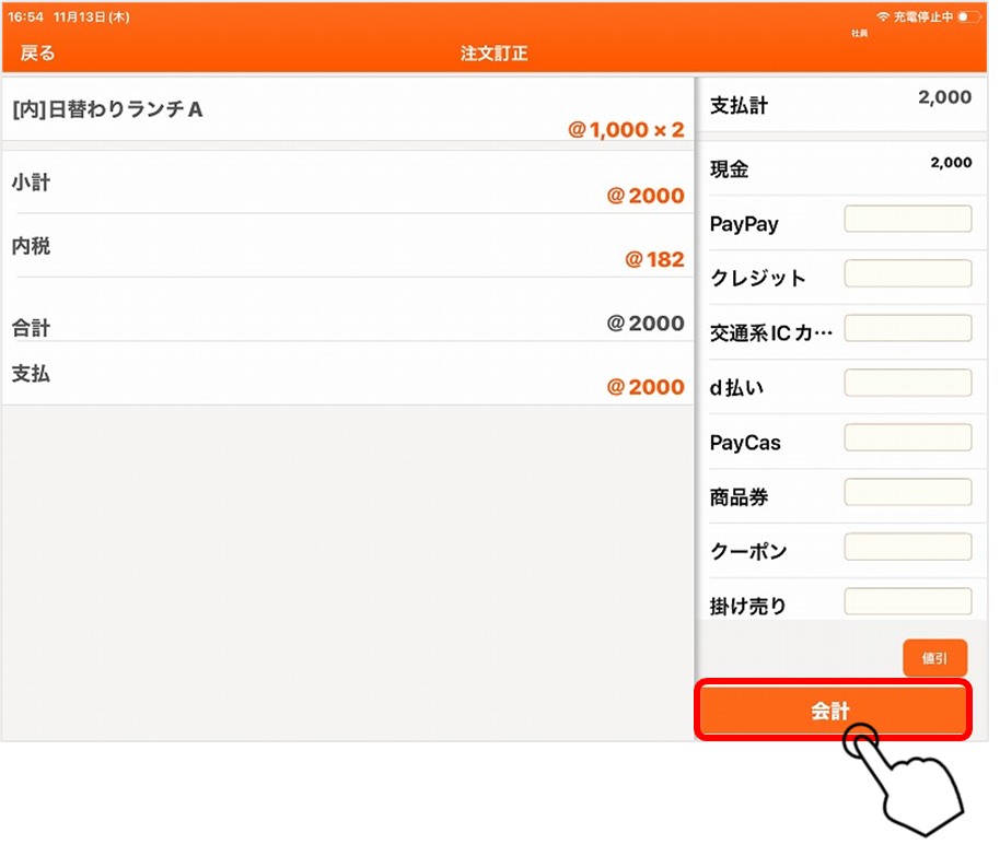 ※未会計の注文を訂正するには、以下のページを参照してください。