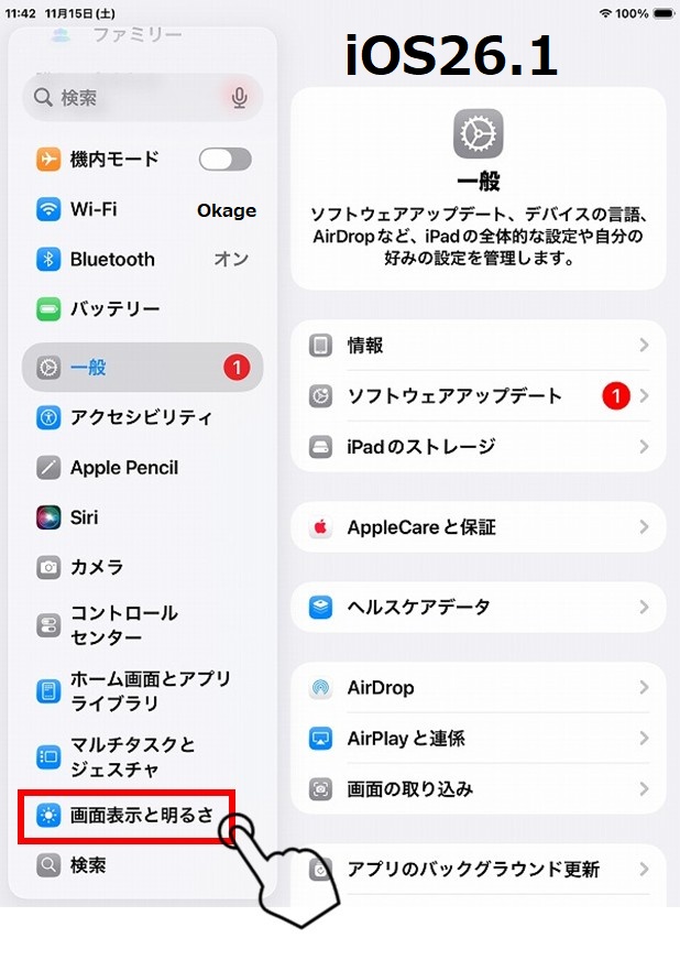 「画面表示と明るさ」をタップします。
