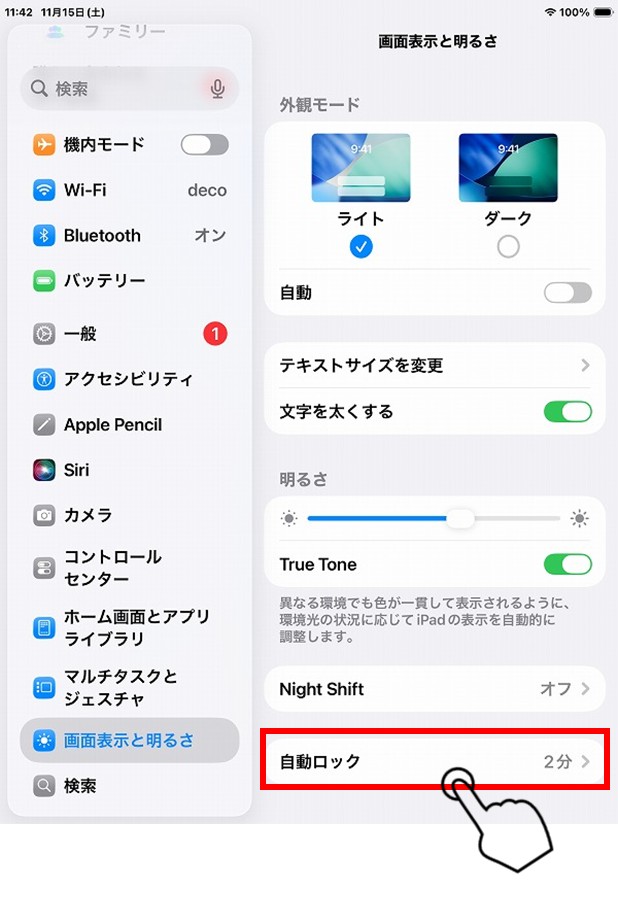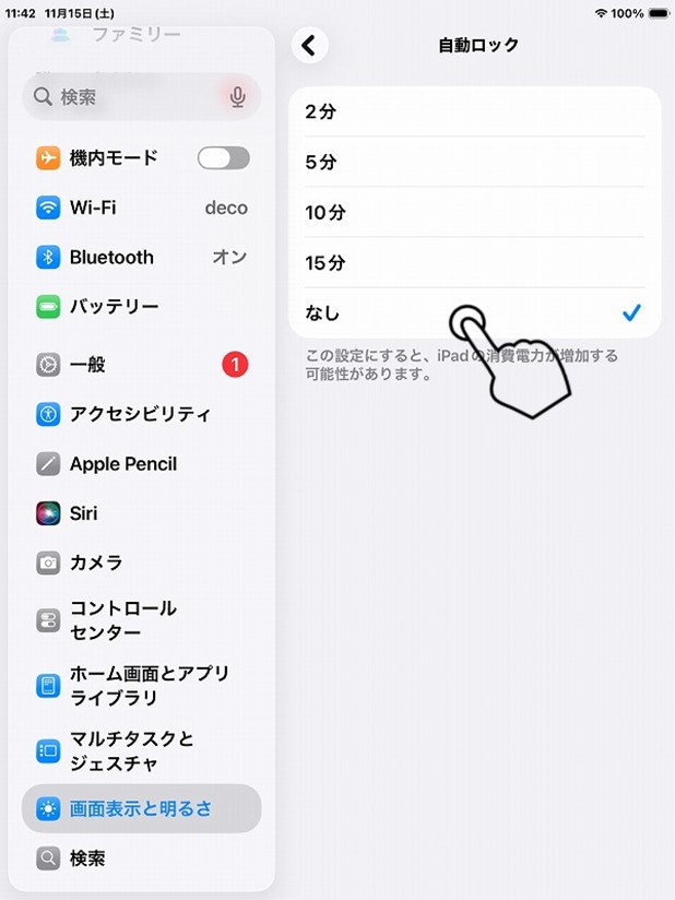 以下の手順で、自動ロックの設定を解除します。