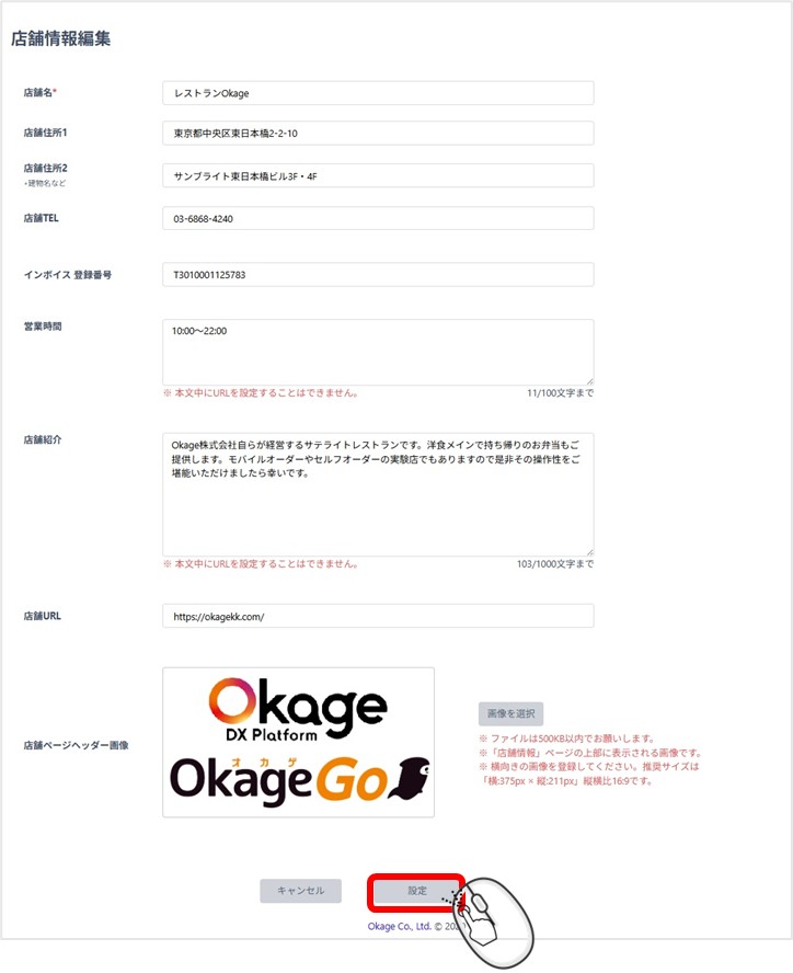 4. 店舗名を入力し「設定」ボタンをクリックします。