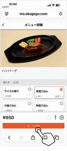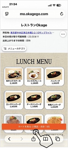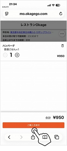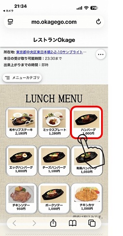 お客様は、以下の手順でOkage Go店外版から注文できます。(旧バージョン)