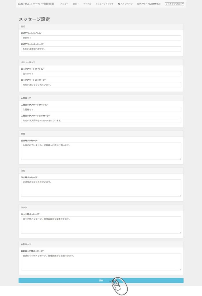 2. 必要に応じて以下の各メッセージを入力し、「保存」をクリックします。
