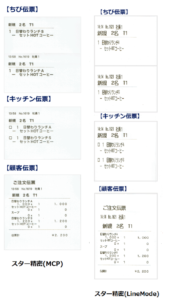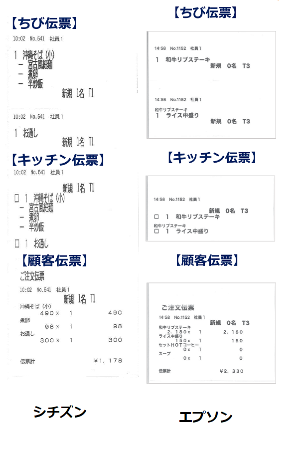 4. 「伝票出力設定」では、 「ちび伝票」「キッチン伝票」「顧客伝票」の各伝票を印刷するかどうかを設定できます。