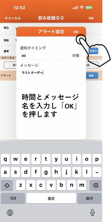 通知タイミングの時間とメッセージの名称を入力して「OK」を押します。
