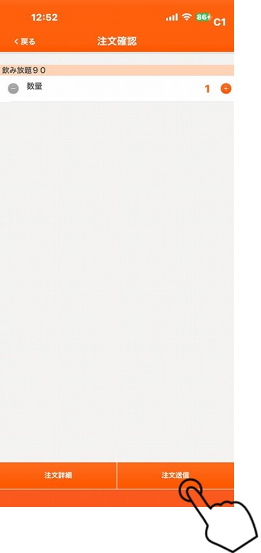 1. 最初に、登録した放題メニューを人数分注文します。