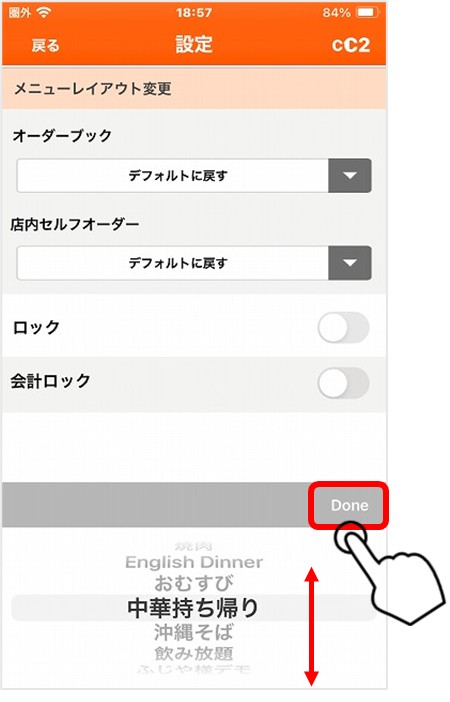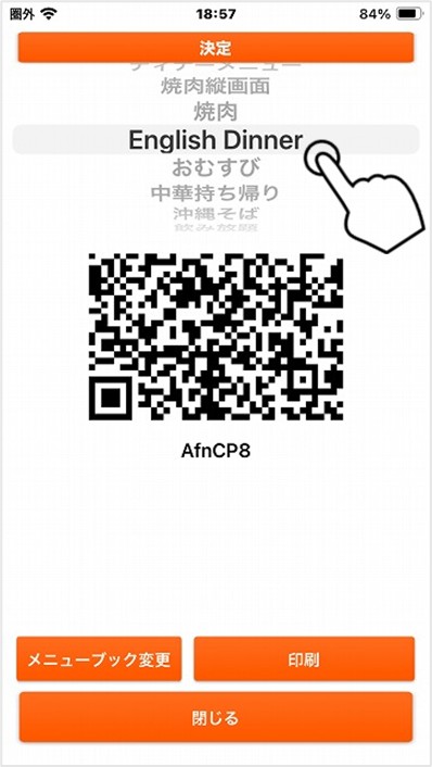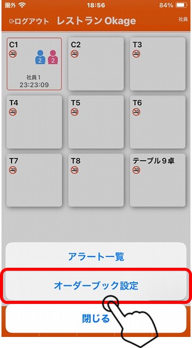 「オーダーブック」もしくは、「店内セルフオーダー」の右側▽をタップします。