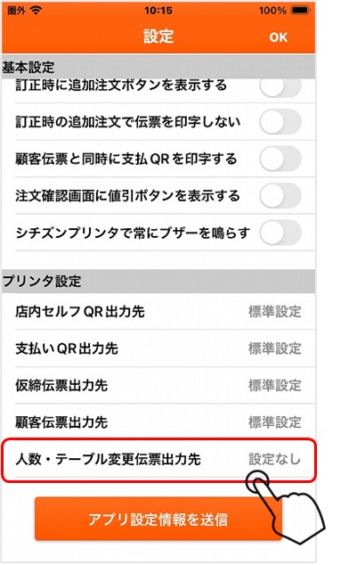 ※レジアプリは伝票合算に対応していないため、人数変更伝票のみ印字されます。