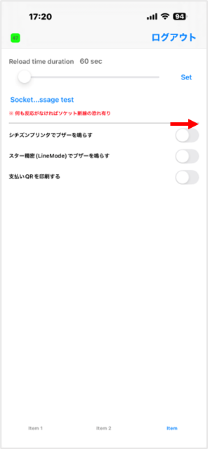 ・プリントコントローラー利用されていた場合、プリントコントローラーの「Item」ページにある「シチズンプリンターでブザーを鳴らす」、「スター精密(LineMode)でブザーを鳴らすがONになっているか?