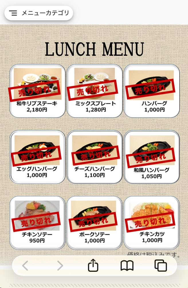 一度に9メニューを「売り切れ」にしたスマホの画像はこちら↓ ↓ ↓