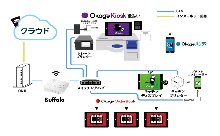OkageDXシリーズは、POS/ハンディをはじめモバイルオーダー・セルフレジ・セルフオーダー・モバイルPOS・キッチンディスプレイ・デシャップディスプレイ・呼出しモニターなどの飲食店向けモバイルサービスをクラウドで統合管理できる次世代のフードサービスDXプラットフォームです。