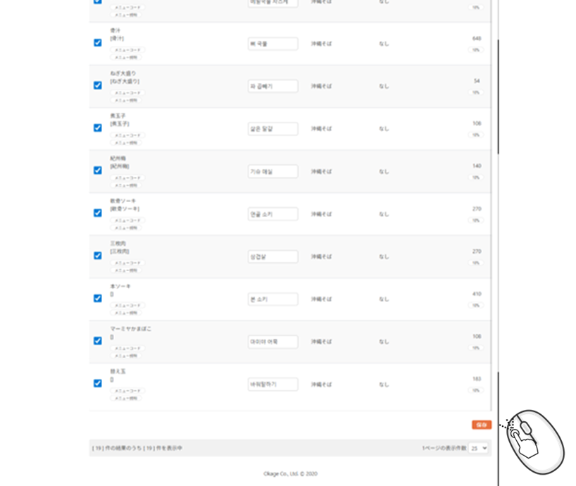 これで19メニューが韓国語に自動翻訳されました。