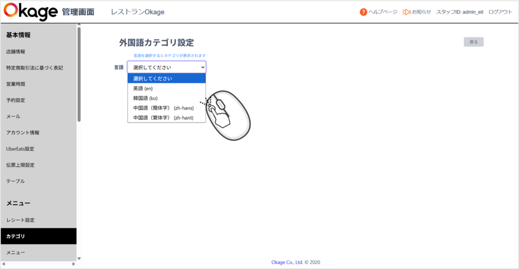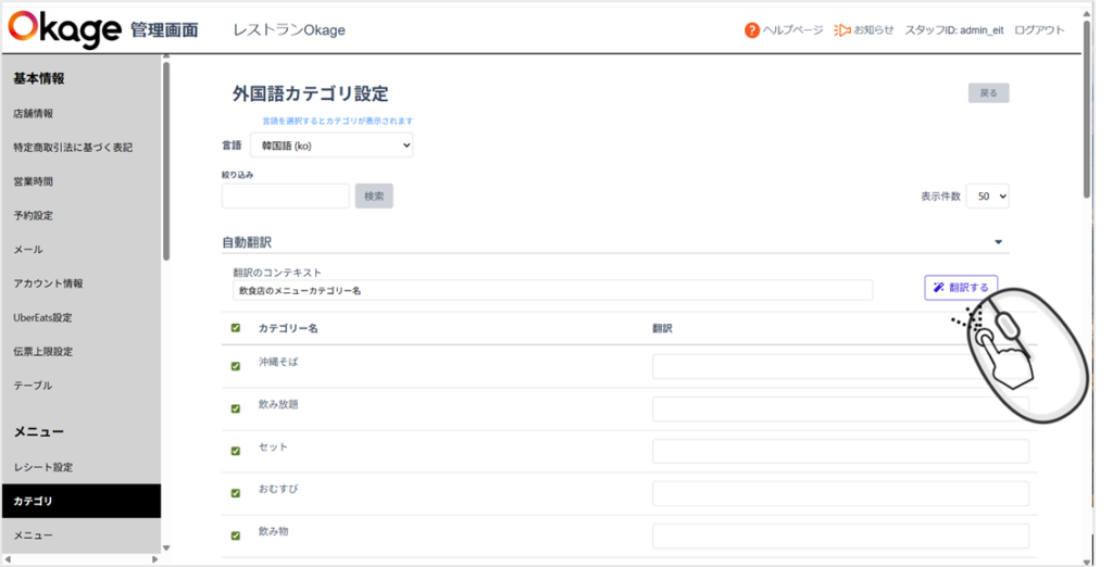 ここでは「English」を選択し、「カテゴリ」は「沖縄そば」を選択しました。