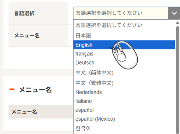 「外国語メニュー設定」」を選択します。