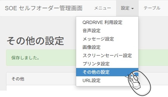 2. オーダーブック管理画面の「設定」-「その他の設定」をクリックします。