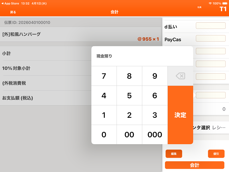 アップデートができる場合、金額入力画面右上の決済端末アイコンに赤丸が表示されます。