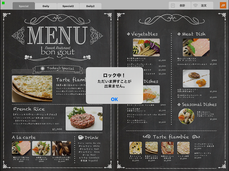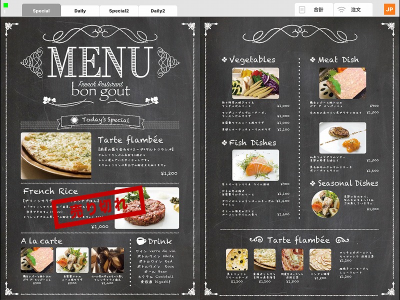 ※ランチとディナーなど時間帯によって、表示させるメニューレイアウトを変更したい場合は、弊社担当者にご相談ください。
