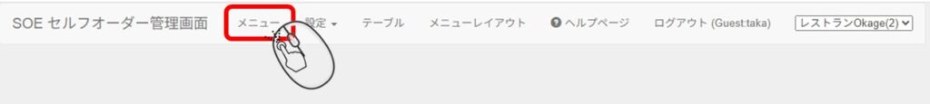 1. オーダーブック管理画面の「メニューレイアウト」をクリックします。