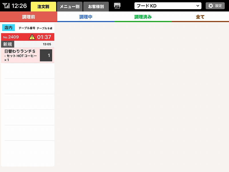 注文がはいると「調理前」のステータスに伝票が表示されます。