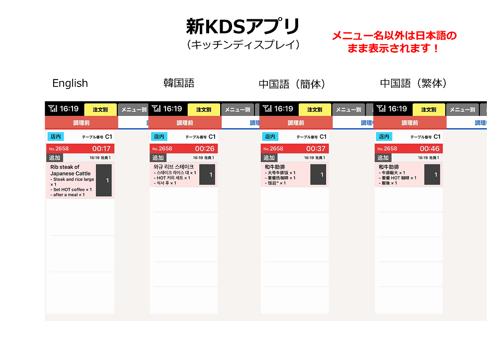 【新KDS(キッチンディスプレイ)アプリの場合】