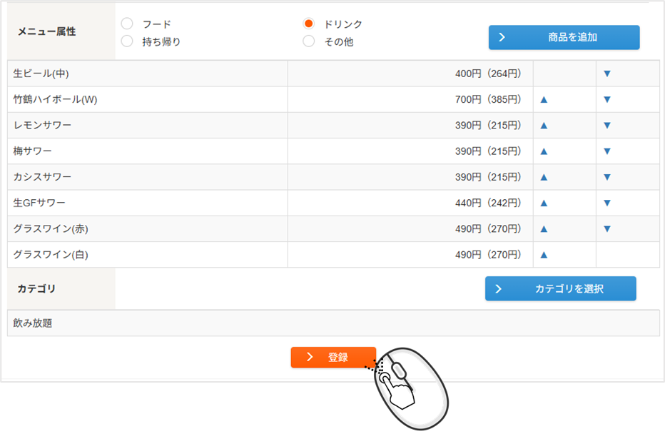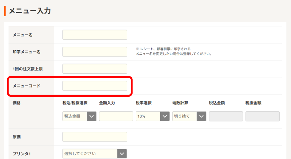「重複を禁止」を選択すると、同じ数値のメニューコードは登録できません。