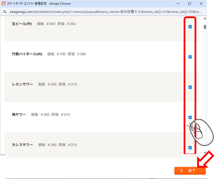 「重複を許可」を選択すると、同じ数値のメニューコードでも登録できます。