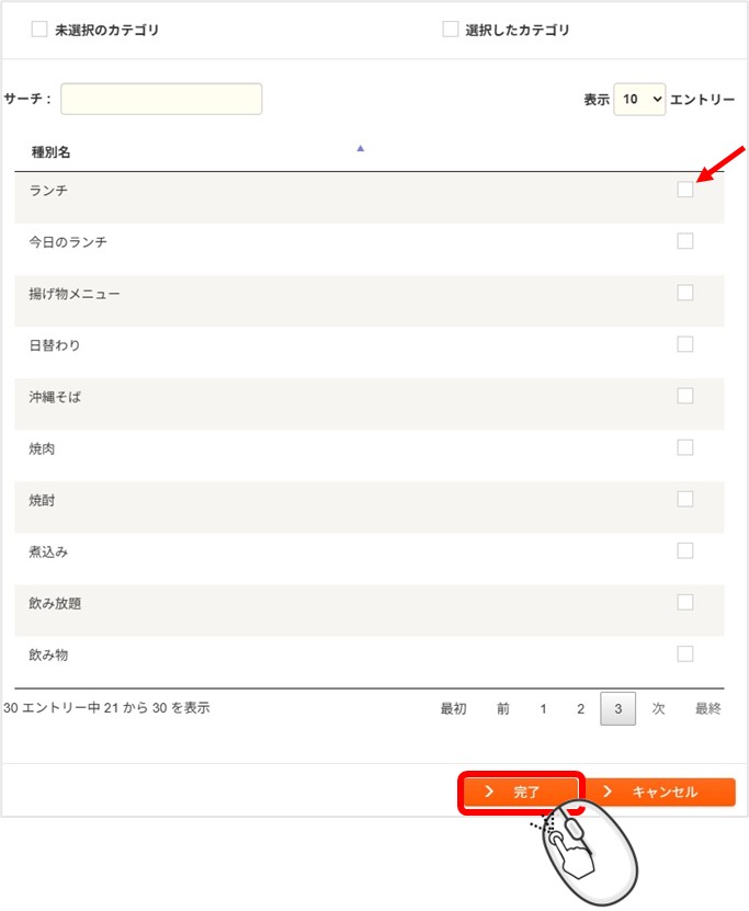 9. 該当のカテゴリにチェックを入れ、「完了」をクリックします。